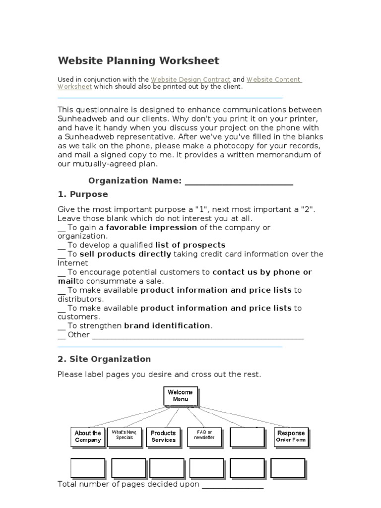 If you dont know an answer or feel like it doesnt apply to you then simply leave it blank. Website planning worksheet phase 1 page templates to help you plan the various elements of your new website creative design weavers provides you with this planning worksheet a content worksheet and multiple faqs pages for you to reference. Secure a domain name.